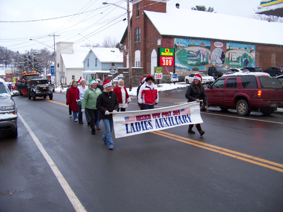 On December 4th, 2010 our post took part in the Annual Christmas in Mexico Parade again this year. Twelve sisters dressed warmly and donned in Santa Hats or Antlers braved the cold and sang Christmas Carols as they marched along the Main Street of Mexico. Sisters Lonnie Dimon and Ashley Henderson carried our Ladies Auxiliary Banner. Commander Russ Marsden, his wife and Auxiliary Sister Char Marsden, Men's Auxiliary Member Carl Spicer and Sister Lonnie Dimon's Son, Curtis followed us in our Army Truck. The Parade Route went from the Village Offices to the Cooperative Extension Building where a beautiful Christmas Tree was Blessed. Prizes were awarded and we received a check for $50. for the (go figure) Most Enthusiastic. Way to go Ladies and Veterans of the VFW!!!!!! Great time was had by all and the Christmas in Mexico grows bigger each year. We are already making plans for next years costumes and / or float.