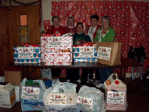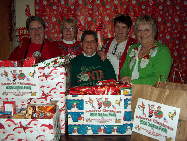 This years 2006 Christmas Family that we adopted through the Mexico Middle School was a Mom, Dad, a boy and three girls who were in need of goodies to make their Christmas a Merry one. As in the past, our Post Members came through again with all kinds of food, clothing and presents for the family. We had two vehicles packed full of things for the family. Our Ladies auxiliary President, Sandy Coe, and Sisters, Janice Gregory, Linda DeRushia, Mary Reeser and Bonnie Bartosek delivered all of the goodies to the school for the family to pick up. What a wonderful Christmas this family will have because of the generosity of our members. See photos below of some of the stuff collected for the family. Thank You All so very much.