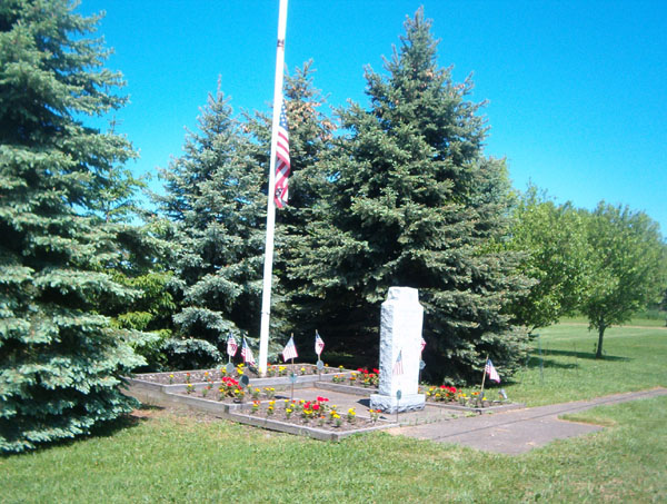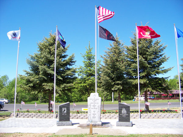 Working with Jody Wiggins, from Kellogg Memorial, a design of the two monuments was made, approved and ordered with a delivery date to be in time for our Annual Ceremonies and Open House on Memorial Day. For six weeks work parties were organized by the veteran's and both auxiliaries to do the prep work in the area before delivery of the monuments. Ground was broke, forms built for the cement to be poured, cement poured in the area complete with sidewalks made wheelchair accessible, flower bed with landscaping blocks made, landscaping and engraving memory stone bricks placed (these bricks will be offered in memory of your loved ones for a donation of $50 each (forms are available at the post canteen), and five new flag poles for each branch of the service were installed.
