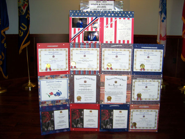 The National Recognition Awards that the auxiliary received, beyond the aforementioned, included: VFW National Military Services for Operation Uplink, Unmet Needs & Map, Donations to National Military Services, Health and Happiness Award (for exceeding the quota for the VFW National Home for Children), and the 100 Percent Membership Award.
