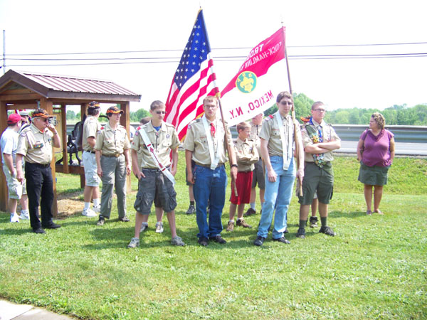 Mother Nature cooperated and the day turned out to be beautiful. Several members as well as members of the community came to attend the services at the post. The participation continues to grow bigger each year. The Mexico Boy Scouts and Jr. ROTC took part in the services and the Jr. ROTC did a demonstration after for the enjoyment of all.